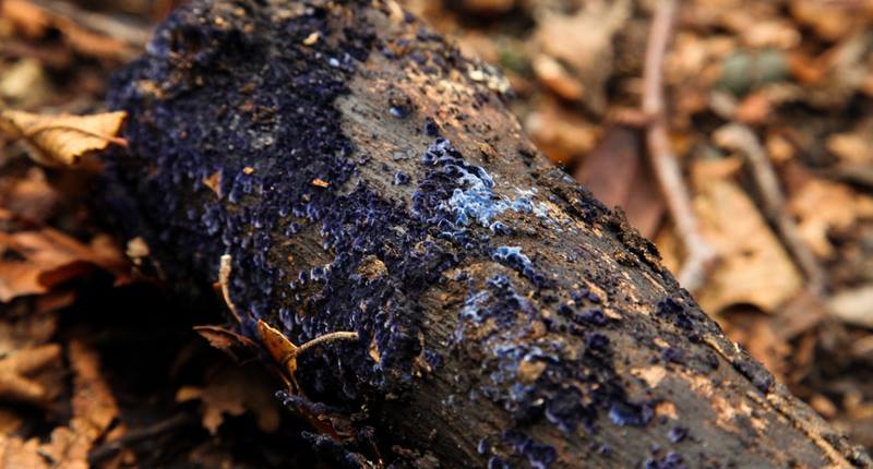 Sì! E' lui: Pulcherricium coeruleum (=Terana coerulea), viene consideraro raro, ma per fortuna da me lo trovo spesso, specialmente su legno di Acer, Carpinus e Fraxinus.