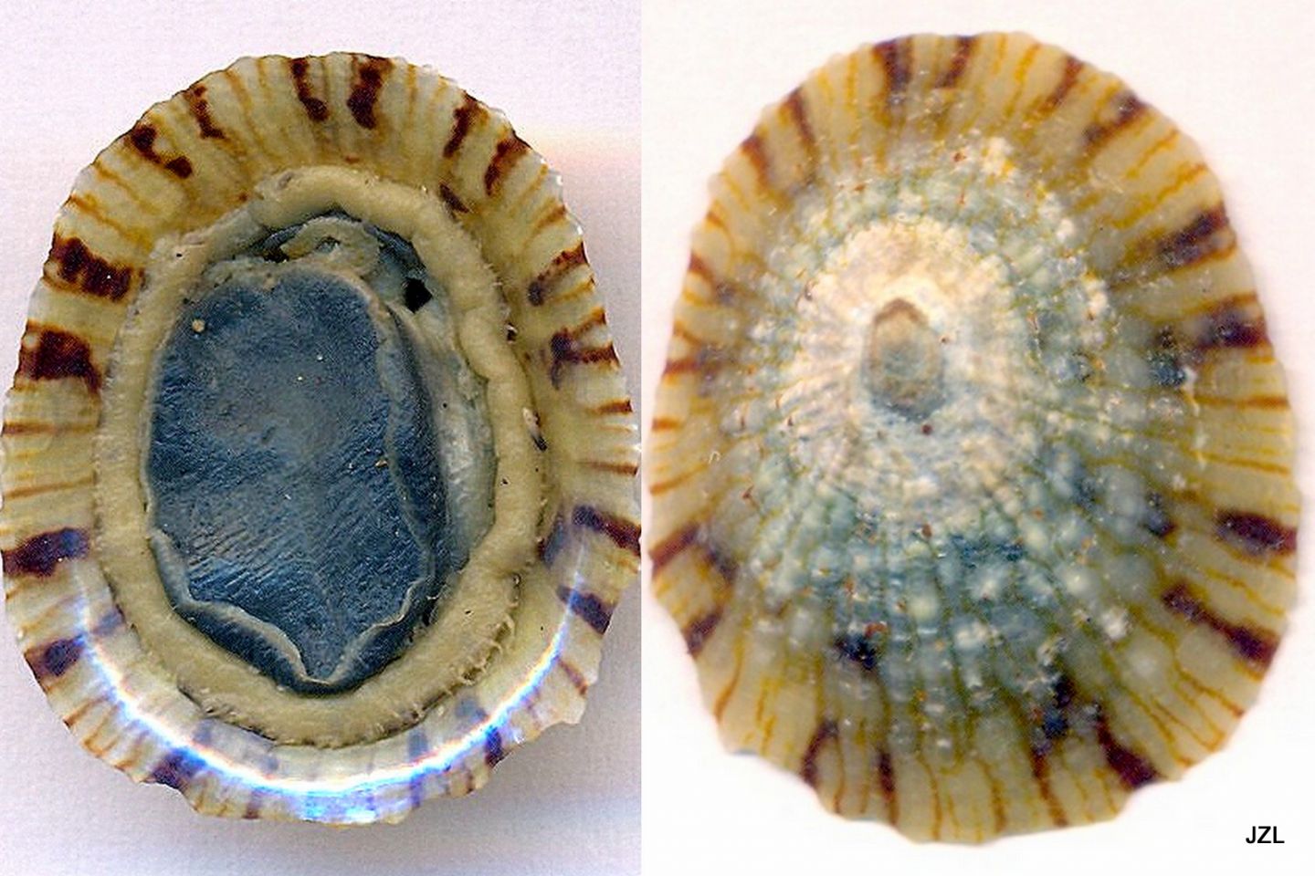Cher Flavio je pense que ces photos d'un individu juvénile(de 14 mm)pris parmi les nombreux spécimens récoltés (vivants et de tous âges) à Zarzis permettra de faire pencher la balance vers Cellana rota !! Amitiés jeanne