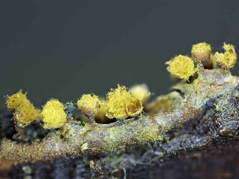 salve trovato a 620 slm. su tronco di roverella, in mezzo alla corteccia, ho scartato la T. decipiens per i teminali non così lunghi e spore non reticolate, avrei scartato anche la botritis anche lei dovrebbe avere i terminali del capillizio più lunghi, sarei propenso per la T. subfusca, ma forse non e sufficiente controllare il capillizio che ne pensate