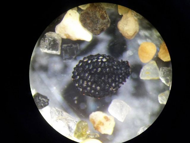 | Ho scritto che la foto è stata fatta con un ingrandimento di 40X, quindi stiamo intorno ai 2 mm...considera che quellio intorno sono granelli di sabbia abbastanza grossolana... |