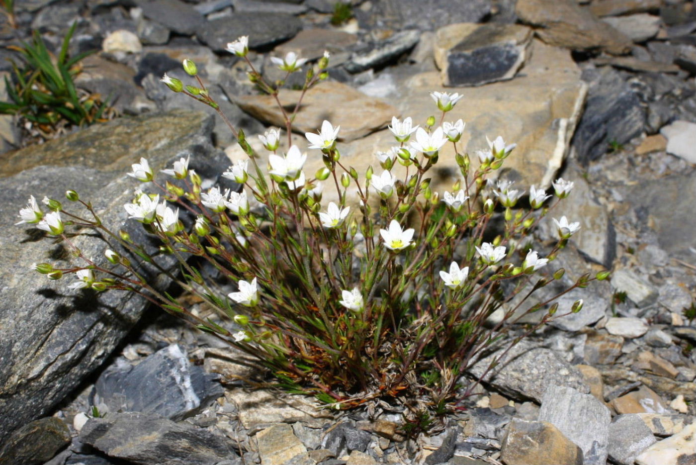 Sicuramente Minuartia: azzarderei Minuartia verna (L.) Hiern.(Minuartia primaverile) Non ne sono sicuro però. Maurizio |
