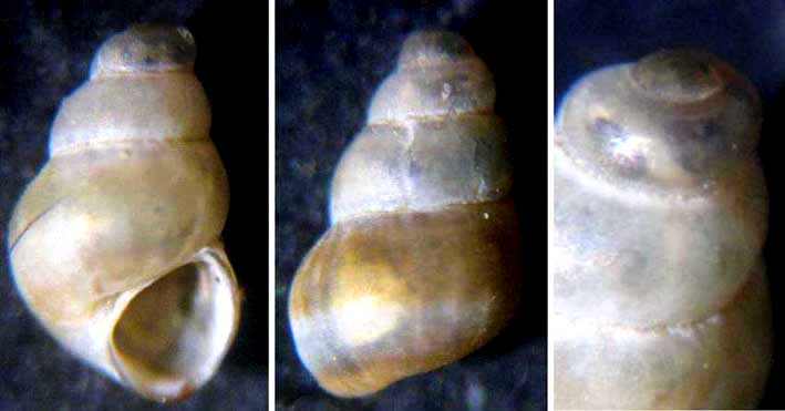 Setia turricolata? Presenza di ombelico. Nessuna macchia ma due bande scure. mm. tra 1,4 / 1,6. Nutro dubbi in quanto credo che la superficie dovrebbe essere trasparente. A 80x non vedo alcuna stria. Litorale di Brucoli-spiaggia
