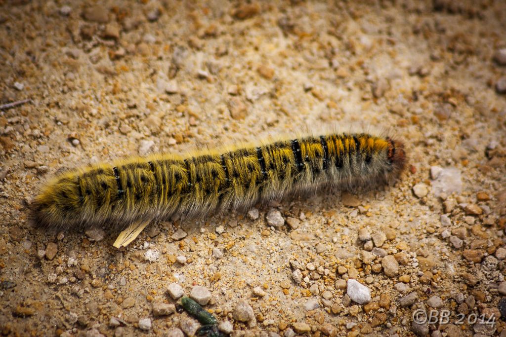 Ho cercato meglio e mi rispondo da solo: forse Lasiocampa trifolii? Intravedo tra i peli strie longitudinali bianche e striature oblique ai lati.