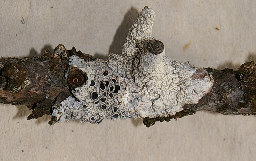 ...in effeti sono belli! Il lichene con gli apoteci neri è Physcia aipolia (ci sarebbe anche un'altra specie molto simile che differisce per la reazione della medulla con d'idrossido di potassio: Physcia stellaris, ma questa a me sembra l'aipolia....). Nella prima foto, vicino a lei cresce una Ochrolechia, con gli apoteci marroncini, forse O. balcanica. Nella seconda foto, a margine, si vede anche un bel macrolichene marroncino con i lobi cigliati: e' Anaptychia ciliaris, una specie oggi divenuta rara al nord, ma ancora molto comune sugli Appennini... un cordiale salluto PLNimis |