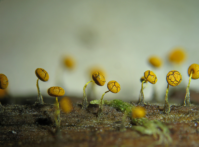 Physarum viride era assai abbondante nei boschi sopra Alagna, (Val Sesia, sotto il M. Rosa),sul legno fradicio; questo in particolare raccolto il 15 agosto salendo al rifugio Ferioli: