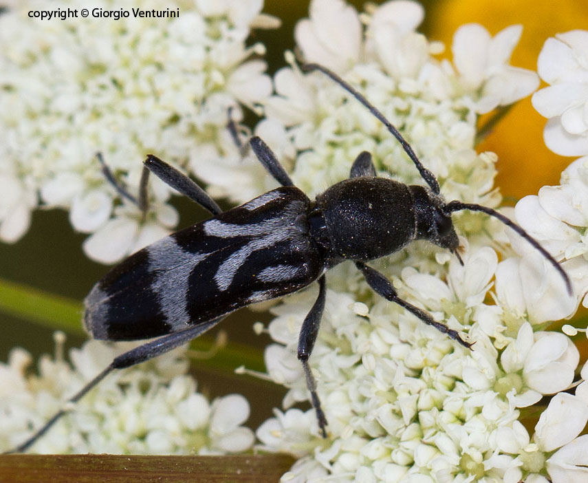 piccolo cerambice comune ieri sui fiori nei monti della Tolfa (Roma)