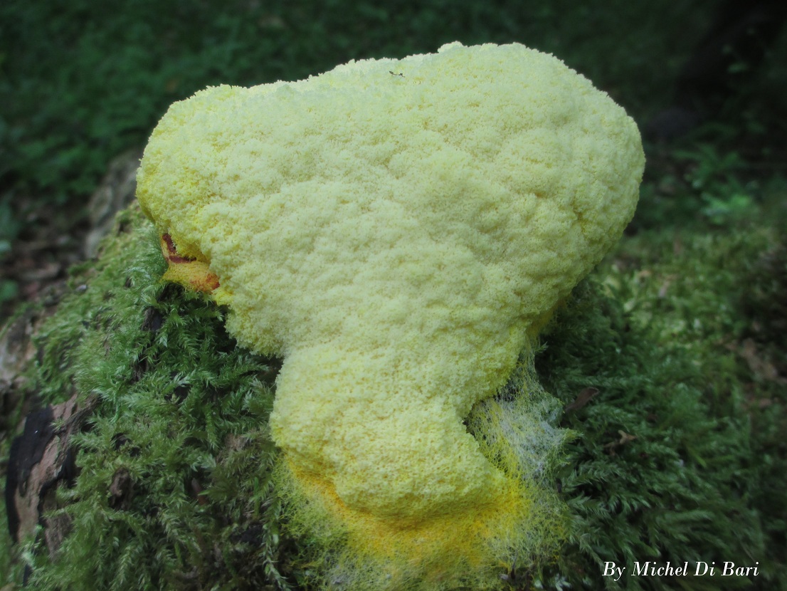 Buongiorno a tutti, scusate il titolo dell'oggetto ma la sostanza che ho fotografato ci somiglia proprio, vorrei porre alla vostra attenzione questo Myxomyceto ( almeno credo lo sia )avvistato a circa 750 mt in Foresta Umbra, Gargano, il 12/06/2014 su di un tronco morto ricoperto di muschio. Le sue dimensioni erano circa 17X12 cm, altezza circa 5-6 cm,la parte interna cremosa.