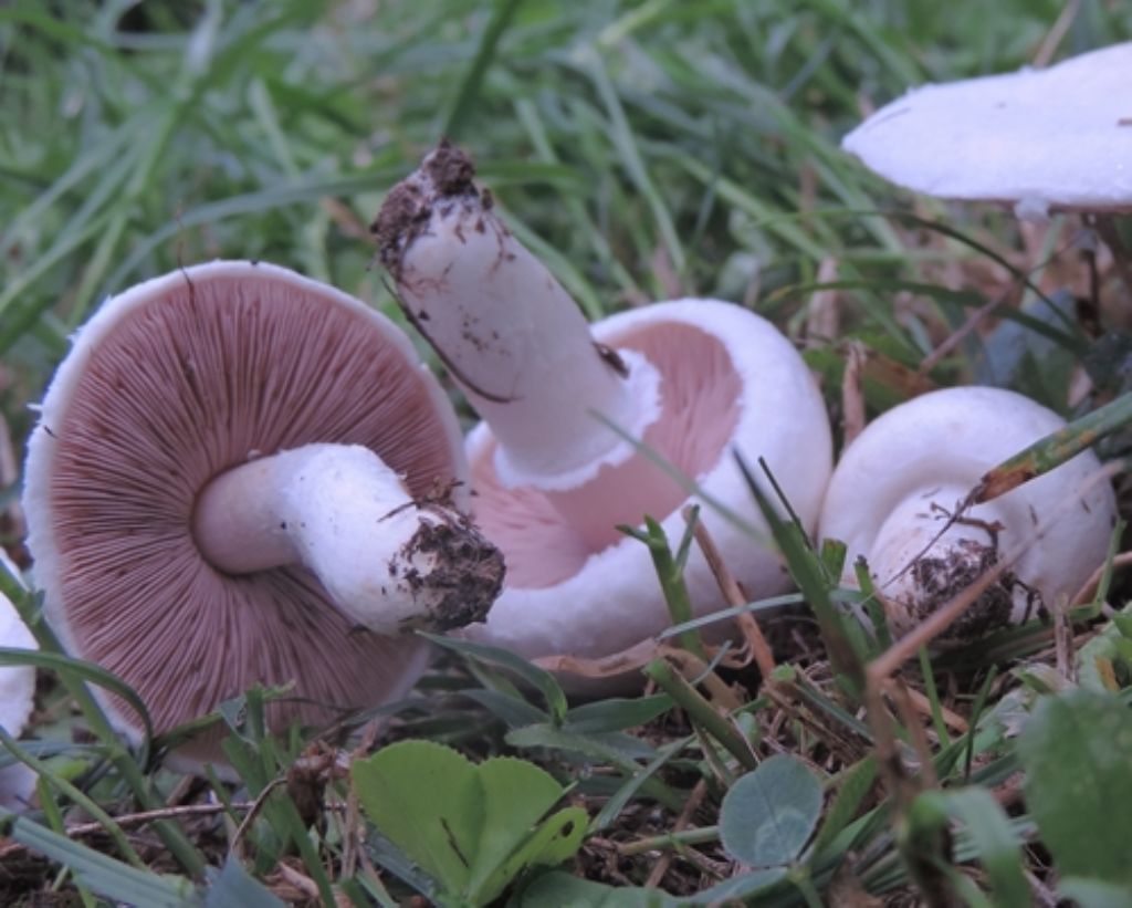 Marche in parco pubblico a pochi km dal mare alcuni esemplari di agarici dal buon odore in file a zig zag sul prato Ciao Lago
