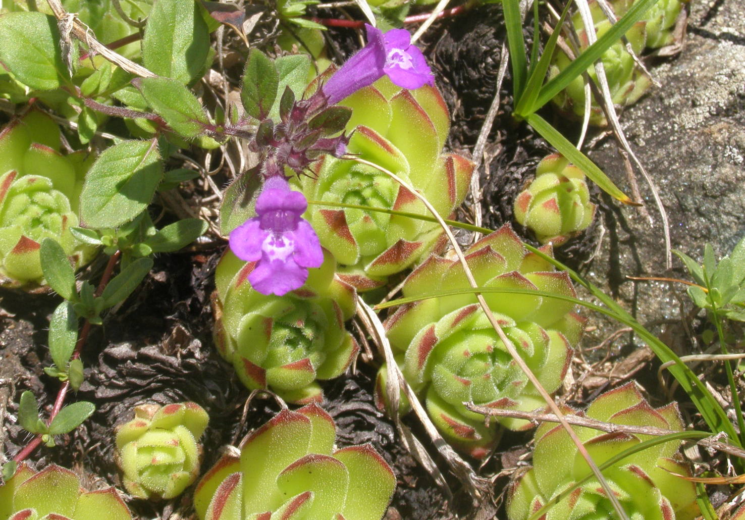 Pensavo di aver trovato l'acinos agrestis, ma mi sa che è il solito alpinus (a 2250 metri era difficile fosse agrestis...), in compenso finalmente sono riuscito a fotografare bene le rosette del sempervivum, che sono decisamente pelose sulle facce. Domanda difficile: dalla foto si capisce se è s. montanum o grandiflorum ?