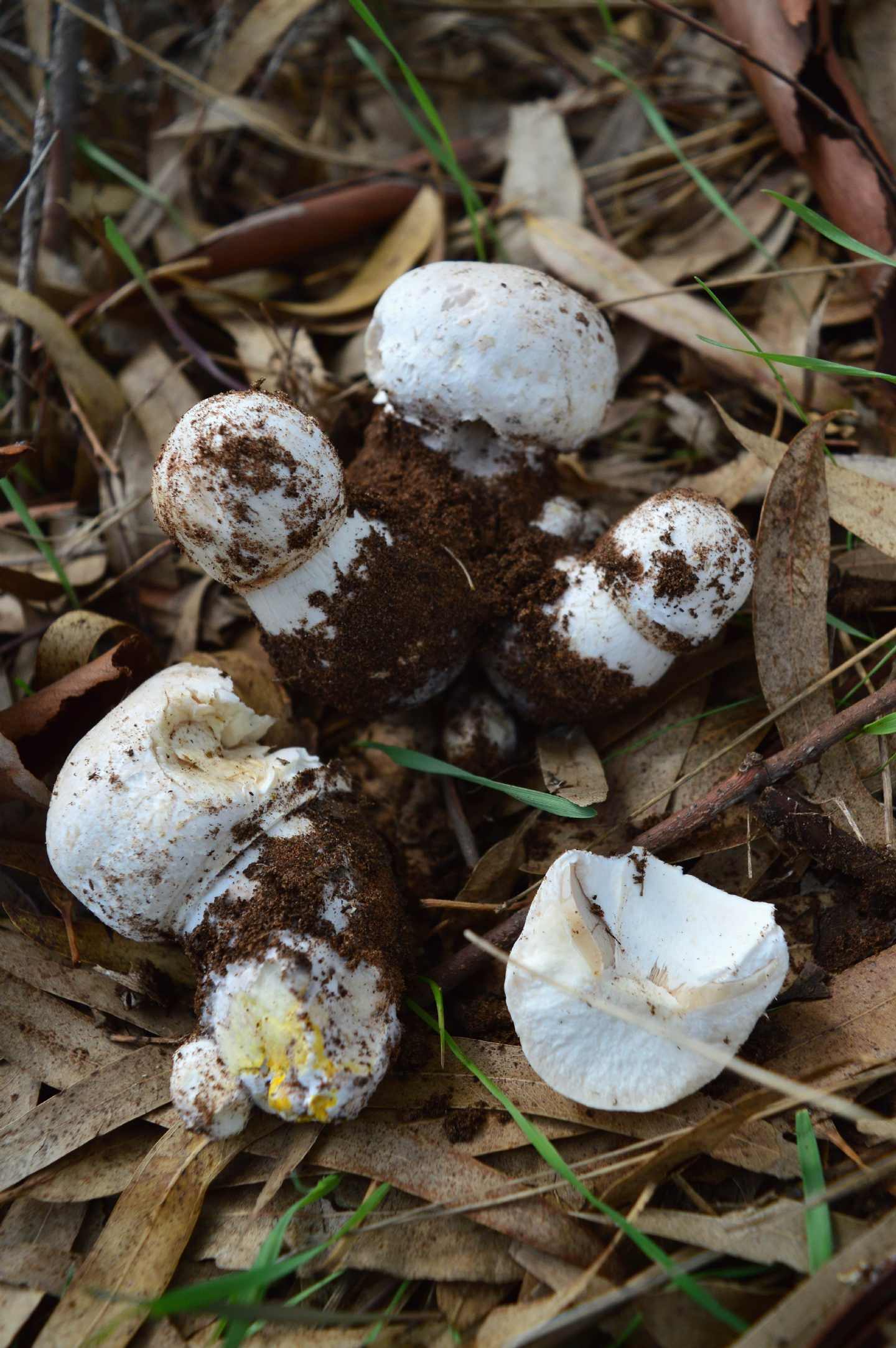 Molto piccoli, comunque carne giallo cromo alla base del gambo probabile sezione Xanthodermatei (tossici) Ciao Lago