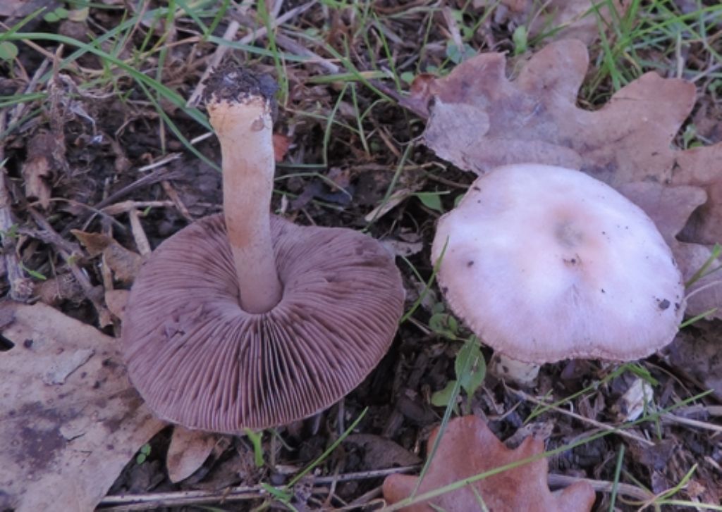 Marche a 15 km dal mare in parco cittadino su prato con querce e aceri questi piccoli agarici max 4 cm. di cappello Ciao Lago