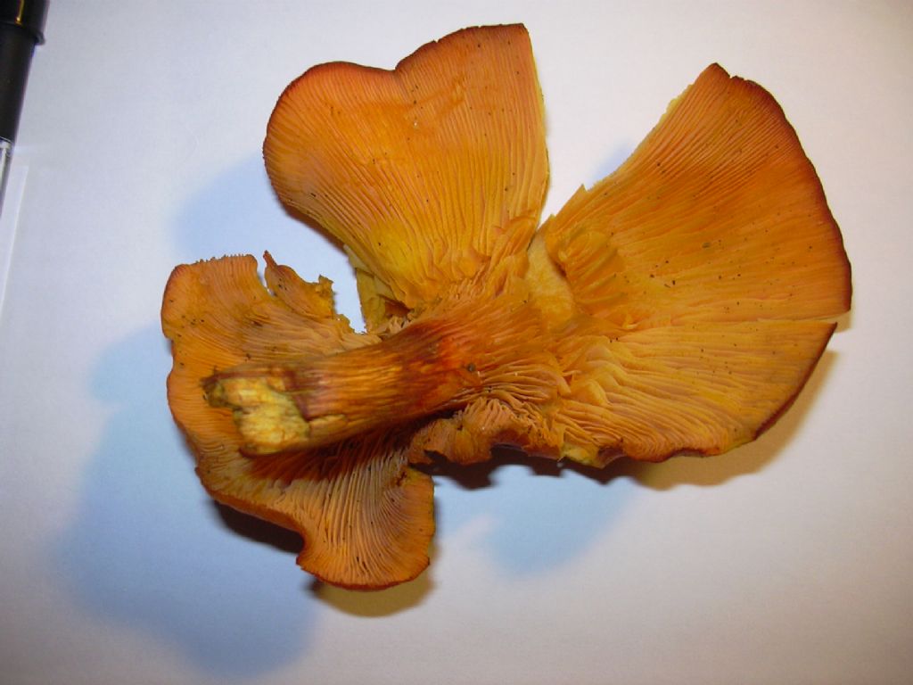 con l'atlante della Muzio l'avrei battezzato Omphalotus olearius, il fungo dell'olivo, possibile? contrariamente a quello che leggo,però, a me l'odore sembra averlo piuttosto definito e anche gradevole... 100 m.s.l. campagna marchigiana su ceppo credo di quercia... un saluto agli amici del forum micologico Immagine: