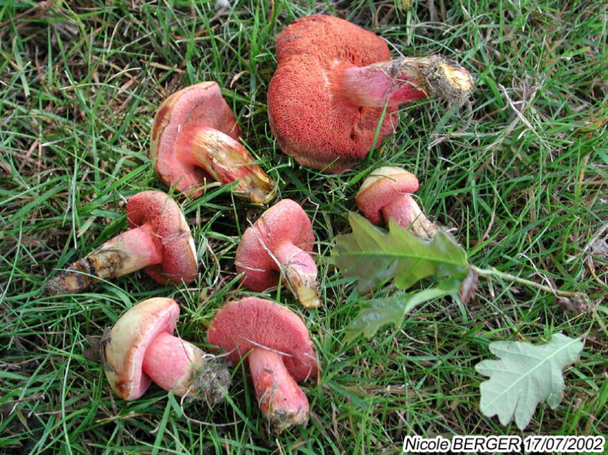 voici 2 photos de chalciporus rubinus prises par Nicole et Claude Berger sous quercus en Bretagne ; Claude Berger, spécialiste des bolets en France m'a autorisé à les publier sur ce forum ; Patrick