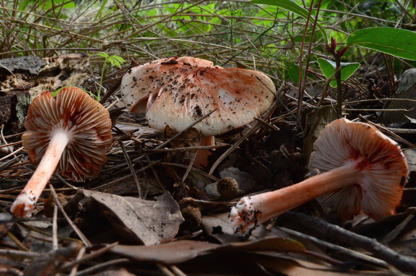 ....assomigliano molto a dei esemplari trovati 2 settimane fa nello stesso habitat 300 m, arrossamento della carne,gambo all'attaccatura delle lamelle bianco,lamelle prima bianche-rosate poi ocra sapore ed odore sgradevole:Inocybe... controllerei la specie godeyi.