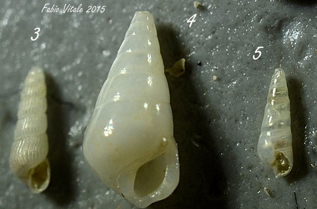 Prima di tutto un grazie a Costantino. Cercherò di essere più preciso evitando esemplari troppo danneggiati. Seguendo i consigli, riposto l'esemplare di Chrysallida insieme a due altri esemplari in collezione che avevo classificato come juliae. Il numero di spire e la costolatura però mi lascia con qualche dubbio per cui chiedo la conferma che si tratta di tre esemplari di C. juliae. La seconda immagine già postata in precedenza dovrebbe essere un Odostomia sp Grazie Immagine: