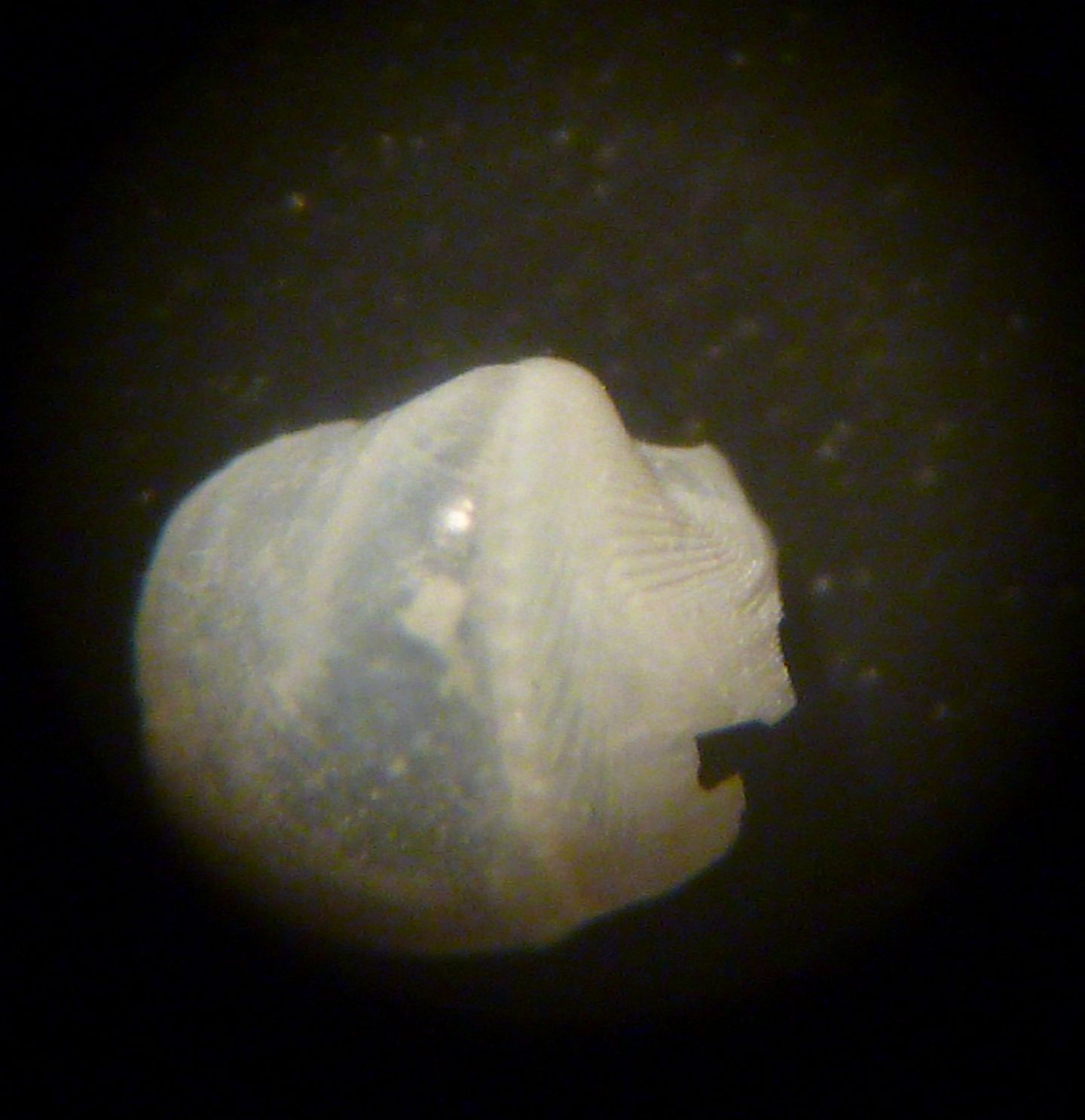 E' molto piccola, 1,5 mm circa e anche un po' rotta, ma tento lo stesso di determinarla: Xylophaga dorsalis? Provenienza Ustica, -50 m.