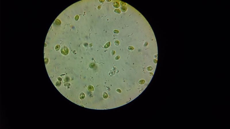 Salve a tutti! in mancanza di un testo per l'identificazione dei microrganismi,chiedo aiuto a voi... gli organismi verdi che cosa sono? Mentre quelli filamentosi,visibili a malapena? si muovevano strisciando nella goccia d'acqua...immagine a 80 ingrandimenti