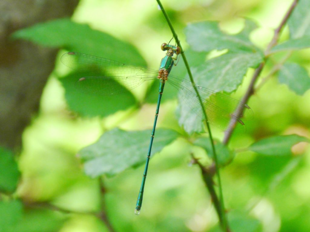 anche se il colore della parte del capo dietro gli occhi non si distingue bene, in base alla località, che esclude alcune specie (in particolare L. sponsa), direi maschio immaturo di Lestes virens virens