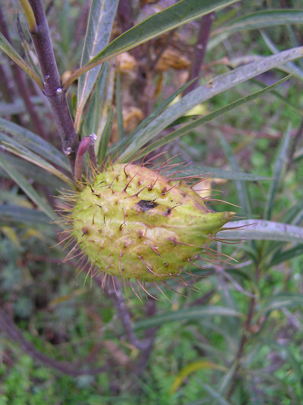questo è Gomphocarpus fruticosus, il falso cotone, un' Asclepiadacea alloctona proveniente dal Sud-Africa e naturalizzata un po' in tutto il Mediterraneo: predilige le zone umide e le valli fluviali, ma cresce con pochi problemi anche nei bordi delle strade!