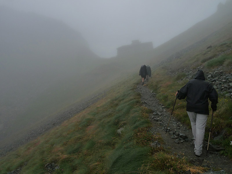 il primo agosto all'ospizio Sottile, a quasi 2500m, salendo dalla Val Vogna; per fortuna il giorno seguente si stava in pieno sole.