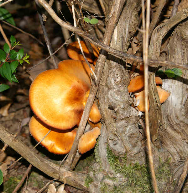 se proprio devi dare un nome a questa foto puoi mettere Omphalotus olearius ma nelle prossime occasione per una determinazione attendibile e bene che del fungo si veda l'imenoforo il gambo e più particolari possibili.