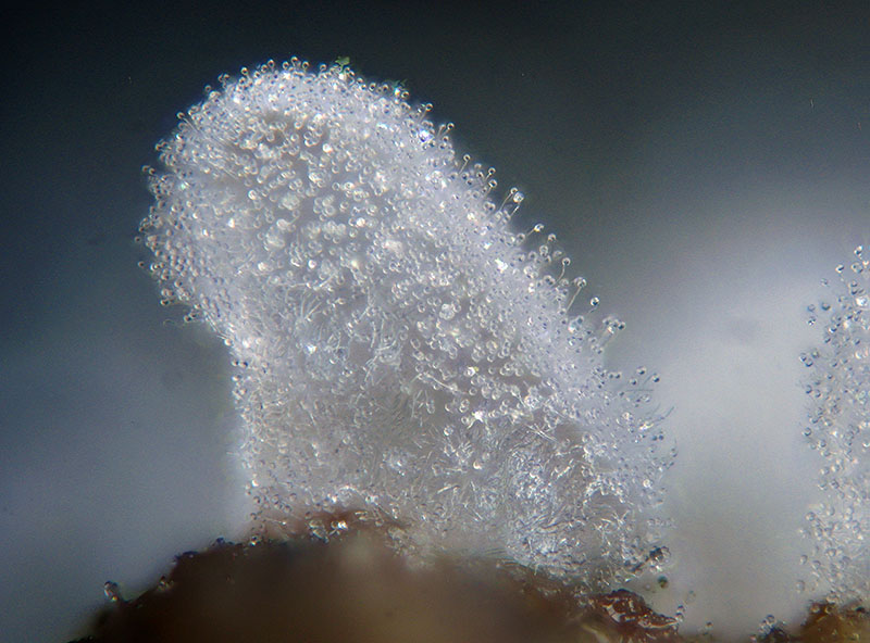 Saluti a tutti  questi tre sono abbondantissimi in queste settimane sul legno morto nei boschi; fotografie tra 20x e 100x. Ceratiomyxa fruticulosa:
