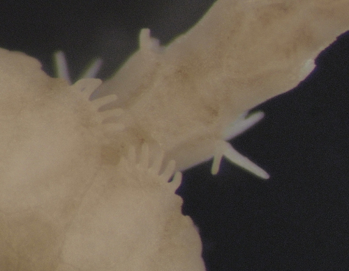 Quindi, almeno per questo esemplare, risulta a mio avviso indispensabile vedere anche un'altra foto: quella del dettaglio della base delle braccia nel lato aborale. |