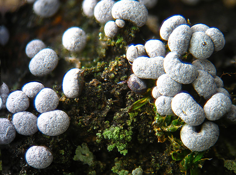 Le foto sopra sono a 20x, (mm 7x5); le prossime, a 40x, (mm 2,5x2), riguardano solamente gli sporocarpi colorati: