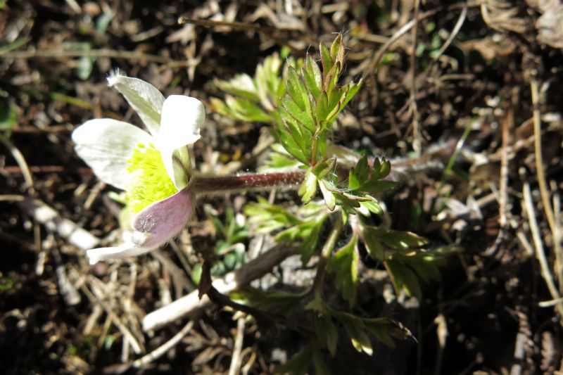 No, P. vernalis non ha quel tipo di foglie, ed è molto più pelosa, il colore roseo sul retro dei petali l'ho visto anche in Pulsatilla alpina.