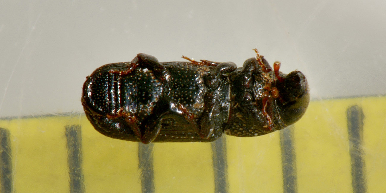 Sotto la corteccia di una conifera(dove avevo trovato anche il Rhagium ) abbattuta dal vento chissà da quando, insieme a tanti Scolytidae c'era anche questo Curculionide. Subito avevo pensato ad un Rhyncholus, però poi mi sono accorto che aveva troppe cose che non quadravano. Facendo qualche confronto, credo che potrebbe essere un Brachytemnus porcatus, ma non ne sono completamente convinto.