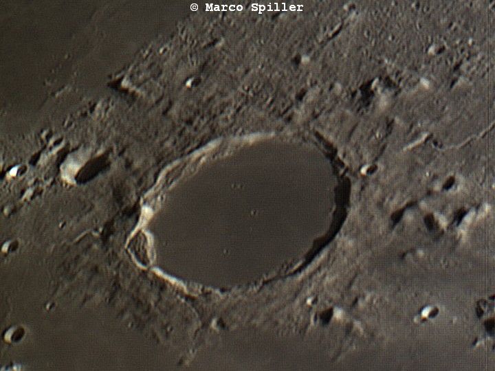 Cratere dal bordo circolare molto irregolare e da un pavimento incredibilmente piatto.