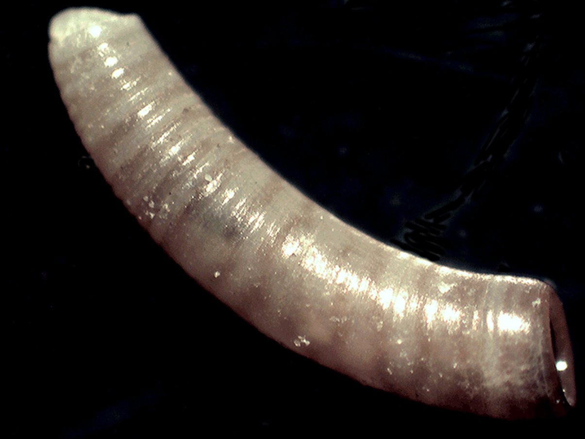 Ciao Mario, grazie per l'intervento. Probabilmente è come dici te, forse la variabilità nelle specie fa si che delle differenze intraspecifiche ci siano anche nei Caecum. Infatti credevo che la specie trachea fosse caratterizzata da coste spirali molto a rilievo, mentre vedo che il primo esemplare esposto, pur non presentando segni di fluitazione superficiali, le ha appena accennate, quasi come un trascinamento dall'una all'altra con una linea leggera di demarcazione. Espongo un esemplare di trachea da Ustica lungo 3 mm, decolorato, che presenta notevoli segni di fluitazione e dove la scultura longitudinale si vede appena. Inoltre sto cercando di fare un ingrandimento della superficie del 1° esemplare per poterla mostrare. Saluti, flavio Immagine: