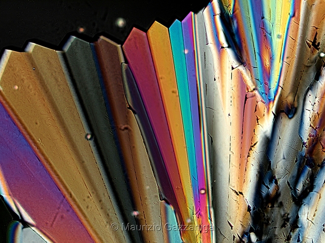 Come da titolo, microcristalli di zucchero osservati in luce polarizzata, obiettivo 20x.