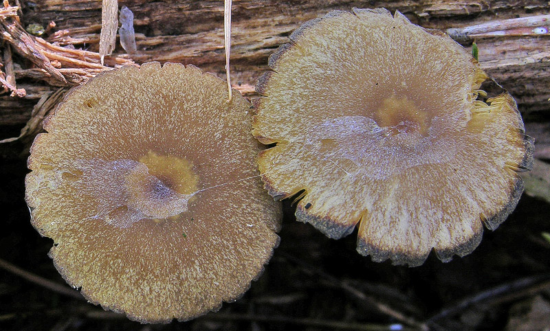 Salute amici, il bordo nerastro mi farebbe pensare ad una poliporacea...(ma quale?) però si intravedono delle lamelle sull'esemplare a dx.