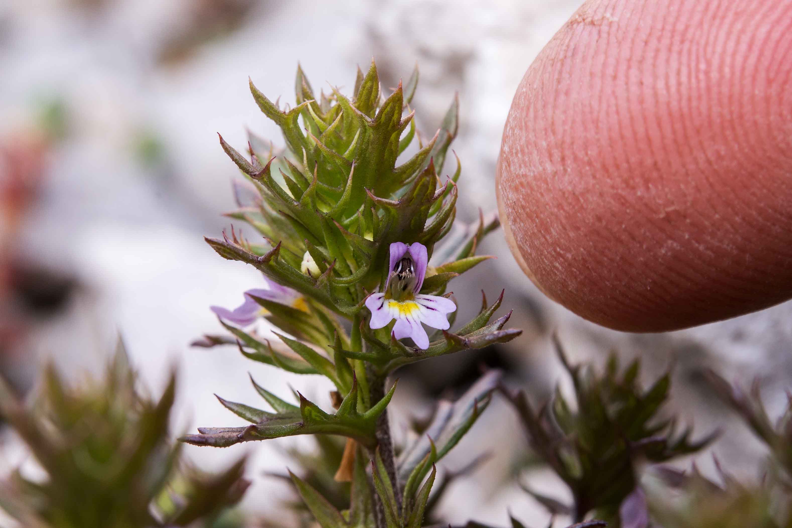 Genere difficilissimo! Ho guardato sulla checklist su altervista, da quelle parti sono riportate 4 eufrasie a fiore piccolo, di queste due possono arrivare a 1900 metri, la E. liburnica e la salisburgensis , che hanno corolla di 4-7 mm. Le altre 2 riportate in zona (strica e illyrica) dovrebbero vivere sotto i 1000 metri.
