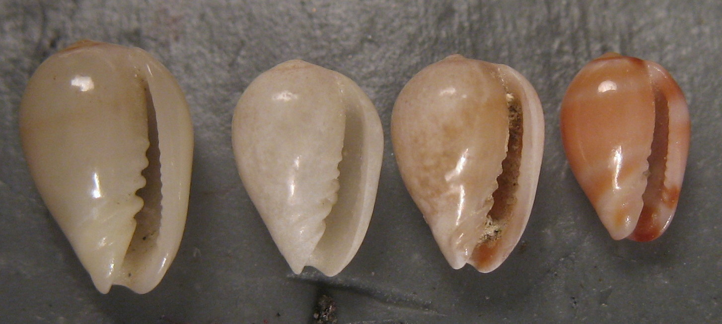 Osservandole sono portata a dire che le prime due, sempre partendo da sinistra, avendo la spalla scivolata e nessuna macchia sul lato anteriore esterno alla bocca, sono Gibberula caelata. Le ultime due con la macchia sul lato anteriore dovrebbero essere recondita. La quarta non presenta però la spalla rialzata,tipica della recondita. Poichè presenta tutti gli altri caratteri tipici, può darsi che ciò dipenda dal fatto che è ancora giovane. Aspetto i vostri pareri. Grazie Spanter