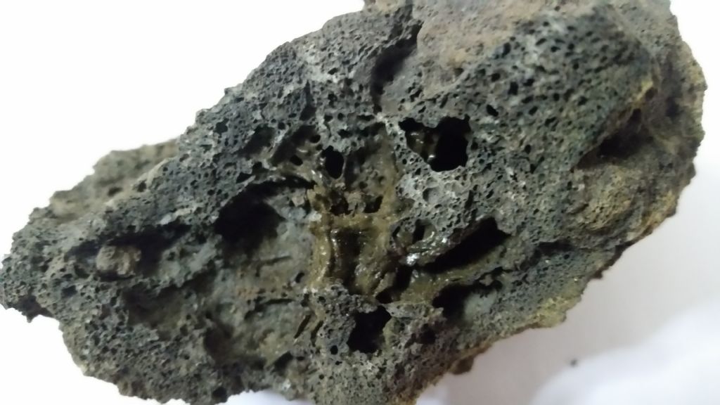 Queste rocce sono state raccolte nella zona del vulcano di Roccamonfina (CE) versante nord in località Monte Luparelli. È una roccia piena di cavità non galleggia nell'acqua ed è di colore scuro. Potrebbe essere una scoria vulcanica?