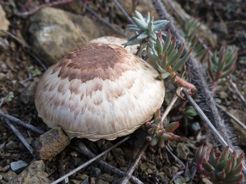 Questi funghi, che penso appartenere alla stessa specie, sono stati fotografati l'8 novembre tra i 500 e i 600 metri sull'Appennino parmense. Da anni li incontro in autunno in ambiente apparentemente ostile, su sfasciumi ofiolitici di norma aridissimi, caratterizzati da presenze botaniche tutte xerofile e adatte a sopravvivere sul serpentino. Le lamelle sono profonde, di colore marrone- rossiccio, gambo sempre piuttosto corto con anello. I funghi non sono molto grossi, forse anche in relazione al terreno poverissimo, il cappello penso raggiunga al massimo i 5-6 cm. Ho pensato al genere Psalliota, è possibile, con queste immagini, andare oltre nella determinazione? Grazie Riccardo Immagine:
