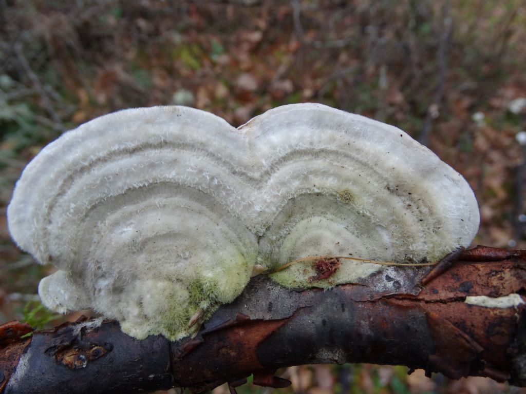 Trametes hirsuta o anche Trametes pubescens. Sarebbe stato utile sezionarla perchè nella prima il contesto si presenta di colore bianco al di sopra e grigio al di sotto, separati da una linea netta di demarcazione.