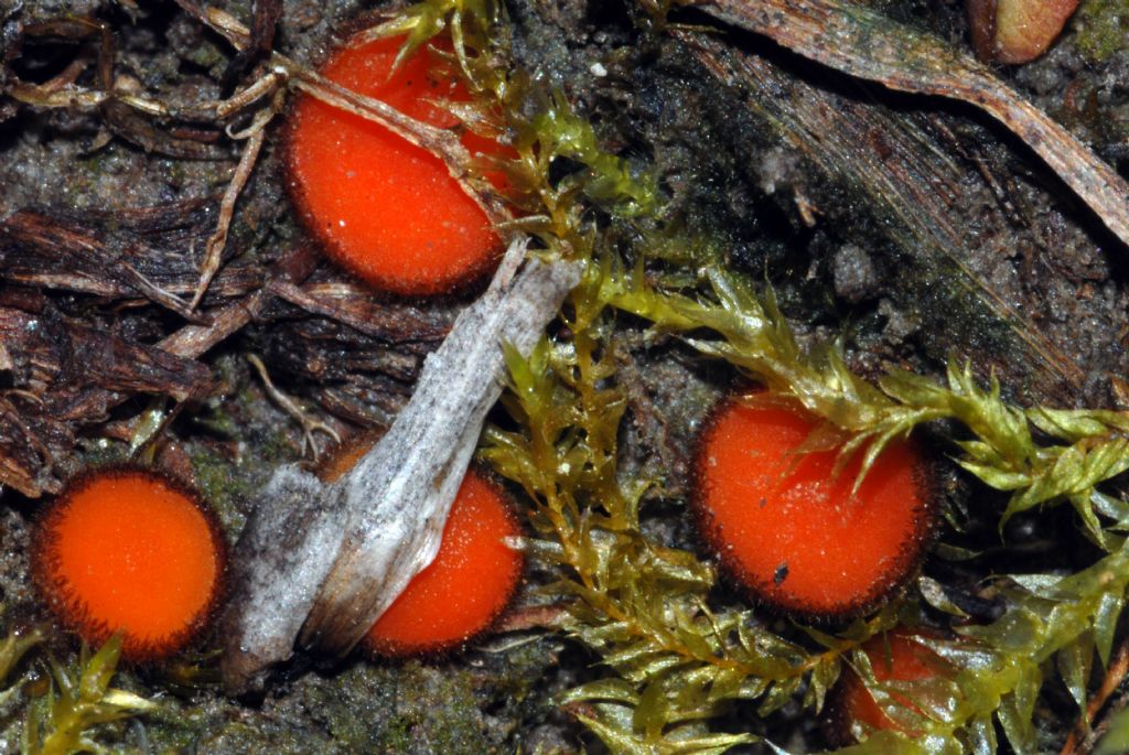 Scutellinia sp., ieri su scuolo costipato tra i muschi a m. 200 s.l.d.m. nella Valle del Crati (CS).