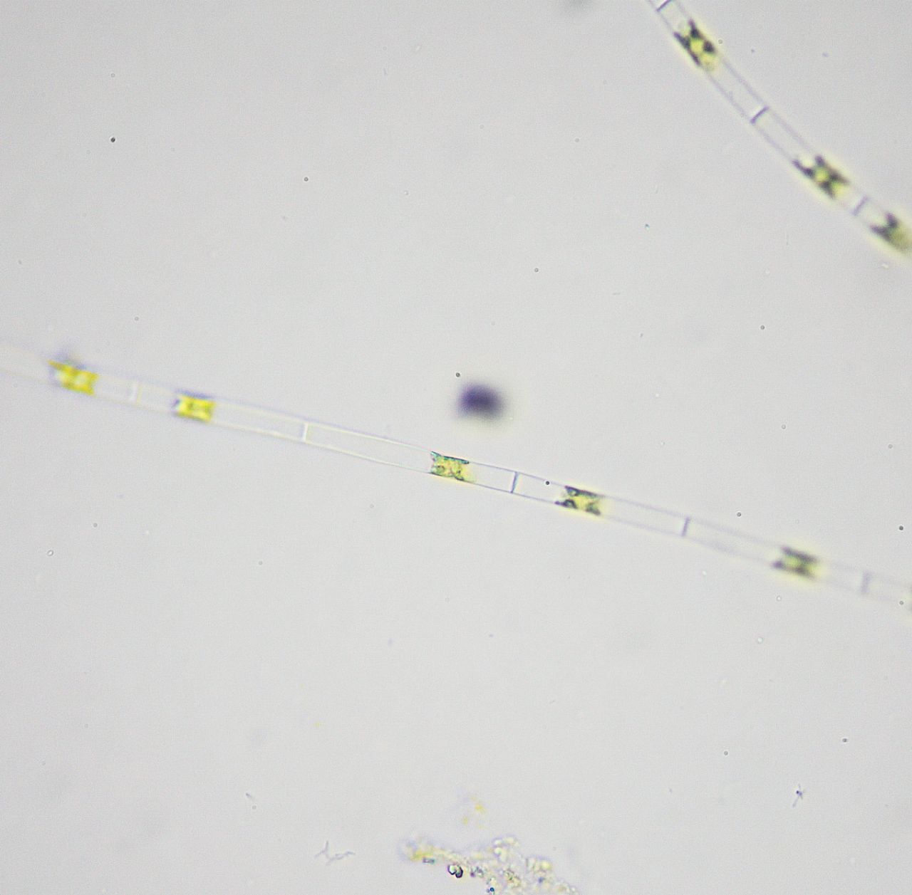Buonasera, alghe azzurre, oscillatoria e nell'altra è un'alga verde?