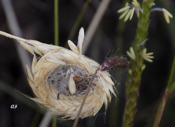 Per me non è facile dare una risposta,troppi ragni possono costruire un rifugio così Larinioides,Cheiracanthium,Phylloneta,anche Araneus quadratus ....io passo