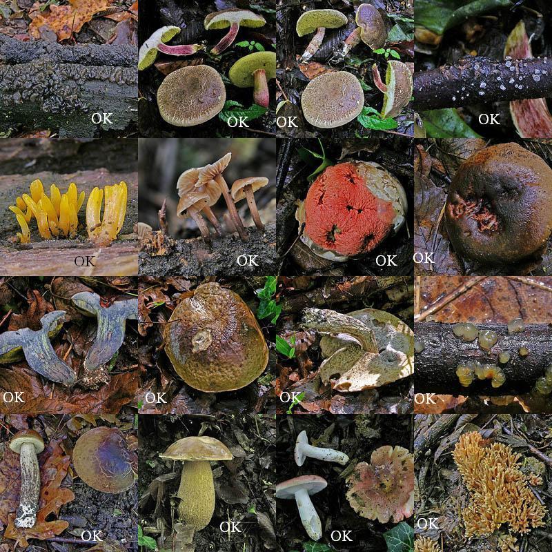 Exidia glandulosa... Xerocomus chrysenteron... Clathrus ruber... Leccinum lepidum... Russula vesca....
