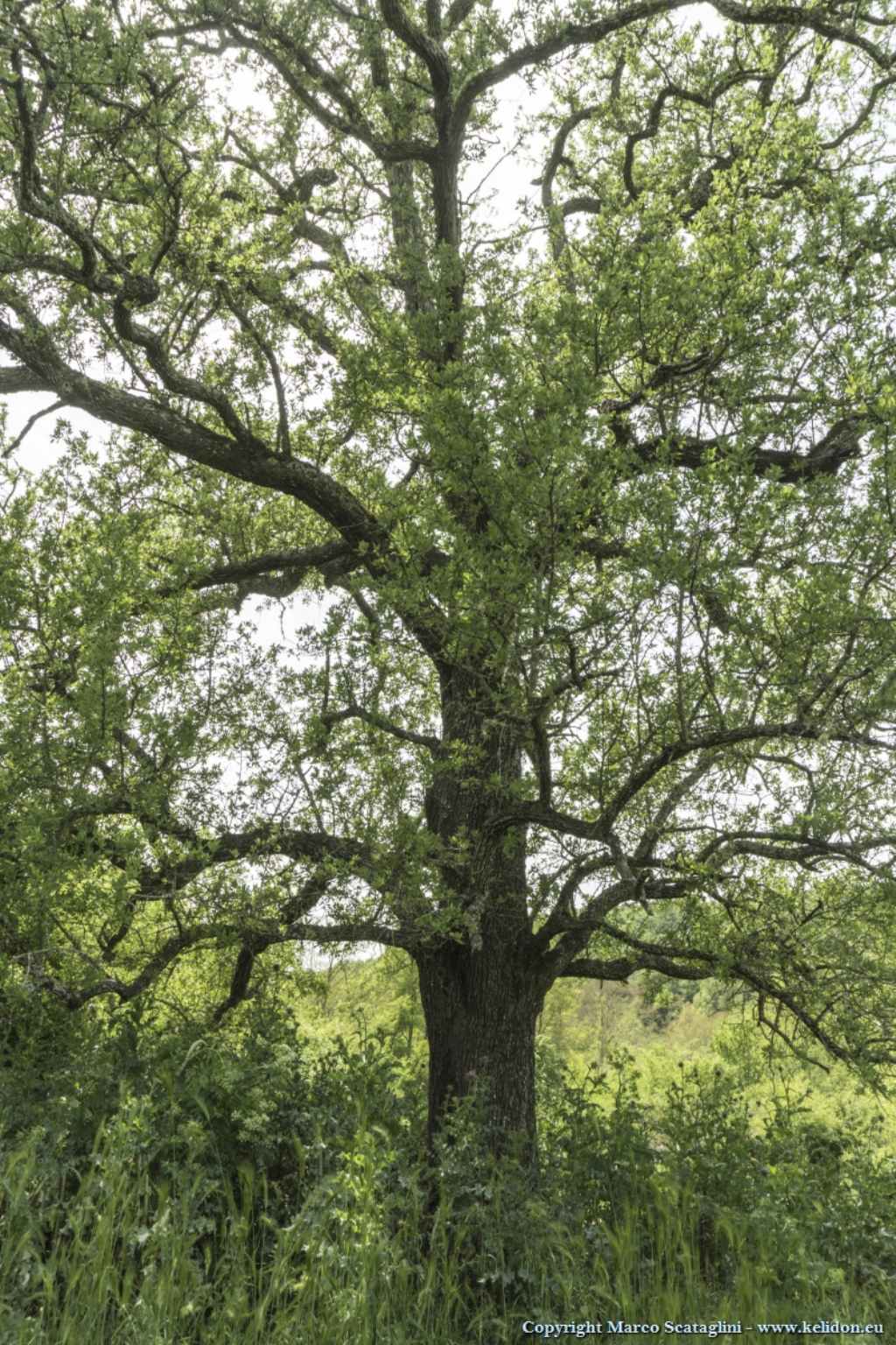 Ciao a tutti. Nella zona di Respampani, una tenuta del comune di Monteromano, provincia di Viterbo, ho visto questo albero di grandi dimensioni. Visitando il sito quasi sempre in inverno, pensavo fosse un cerro, o comunque una quercia, date le dimensioni e il tipo di corteccia. L'altro giorno, invece, ho visto le foglie e decisamente non è una quercia! Però non mi riesce di capire la specie. Le foglie sono a gruppi, morbide, tomentose, sotto quasi pelosette. Allego foto. Qualcuno può aiutarmi? Grazie! Immagine: