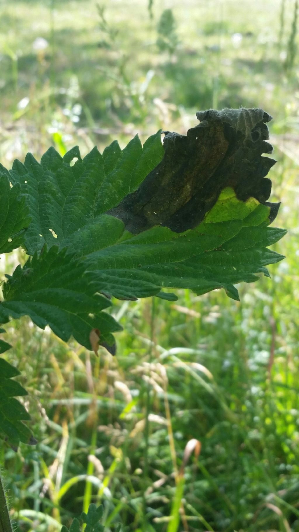 Questa foto l'ho scattata il 03 giugno 2017 nel comune di Roccamonfina (CE), ad una quota di circa 590 metri, fotografata lungo il bordo di un sentiero di campagna. Perché questa ortica ha queste macchie nere? A cosa sono dovute?