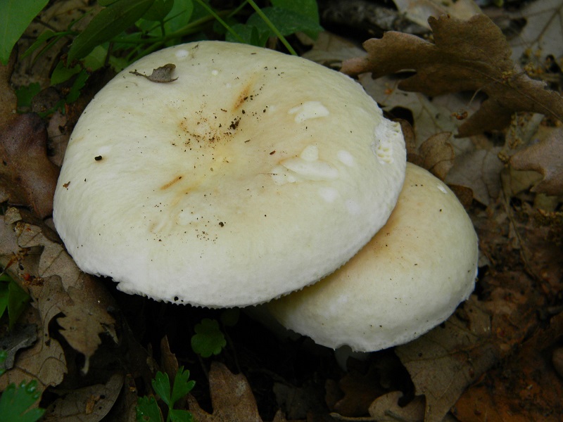 Visto il colore della sporata (2° foto a sx) opterei per Russula rubroalba var. albocretacea.