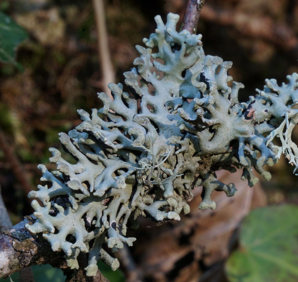 no non si tratta di Pseudevernia furfuracea bensì di un lichene che si trova spesso associato ad essa: Hypogymnia tubulosa (Schaer.) Hav..