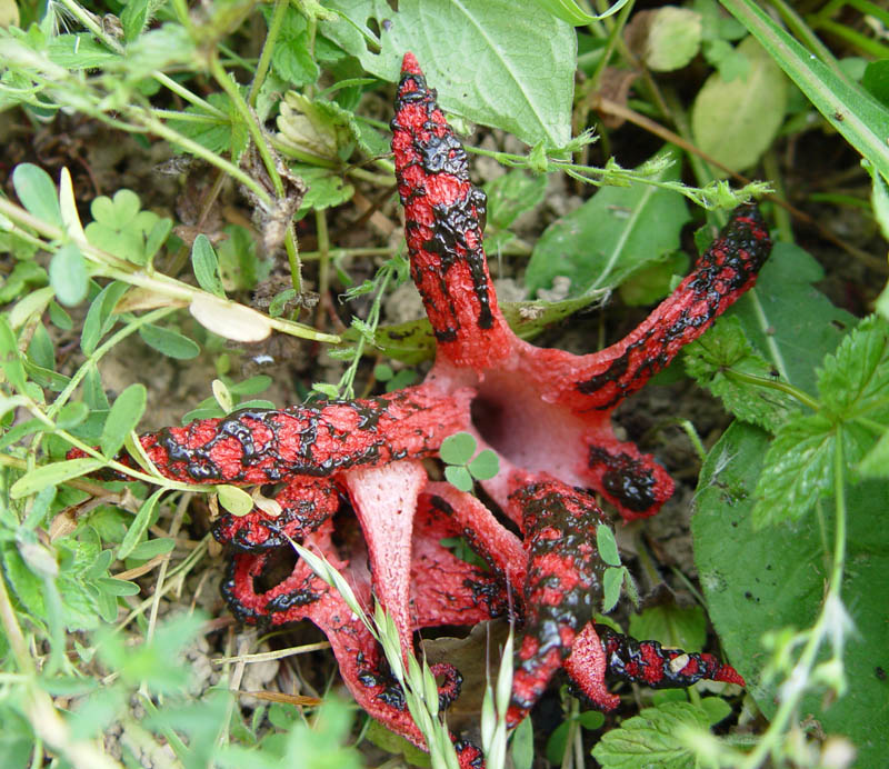 Clathrus (= Anthurus) archeri. E' una Phallacea che ha origine esotica ma che negli ultimi anni si è diffusa anche in Europa. Si riconosce, oltre che per l' aspetto caratteristico, anche per l' odore non proprio gradevole che condivide con i suoi "simili" (ad es. il molto più comune Phallus impudicus).