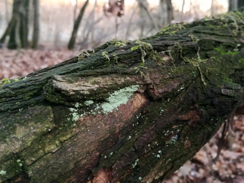 Quello che hai fotografato è proprio un lichene. In particolare è un lichene con forma di crescita leprosa ovvero con un tallo granulare o polveroso. Per quanto riguarda la sua identificazione dovrebbe essere una Lepraria ma senza ulteriori analisi chimiche non credo si possa andare oltre il genere.