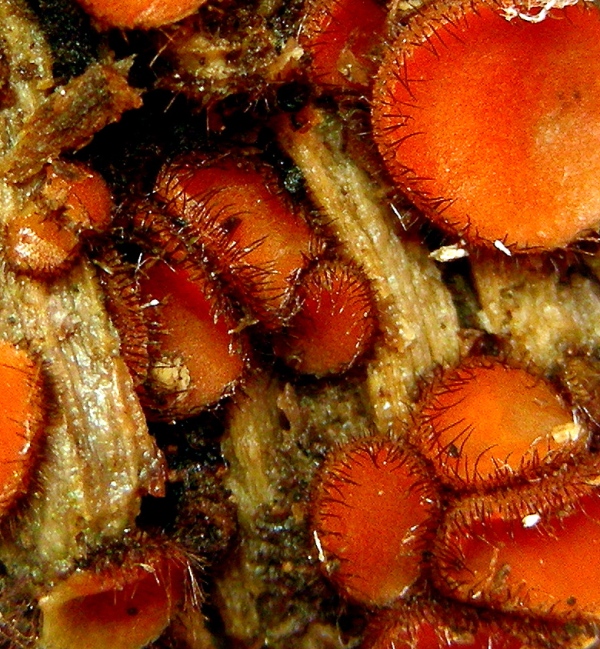 Ciao a tutti, ( 11,06,2007) girovagando sooto la casa di un mio amico dove taglia la legna durante l'inverno ho notato piccoli ascomiceti nati su segatura molto degradata. Gli ascocarpi di color arancio misurano circa 03 - 1,2 cm circondati da ciglia grigio scure molto belle ed evidenti in macrofoto.